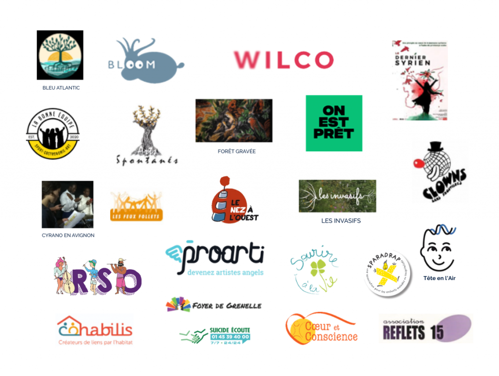 Associations engagées dans le domaine social qui prônent la solidarité et soutiennent les personnes en situation de vulnérabilité : Union Régionale Cohabilis Ile De France, Cœur et Conscience, La Bonne Équipe, Les Feux Follets, Suicide Écoute.