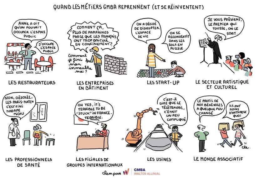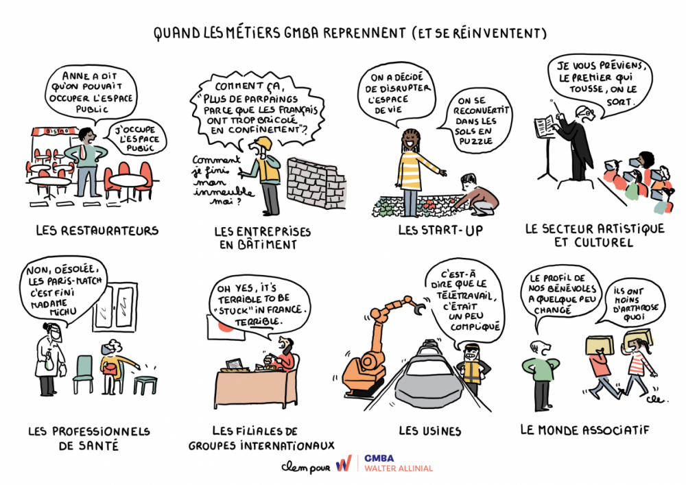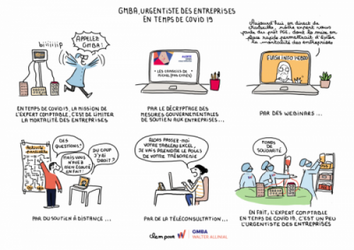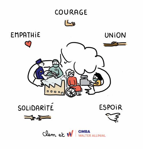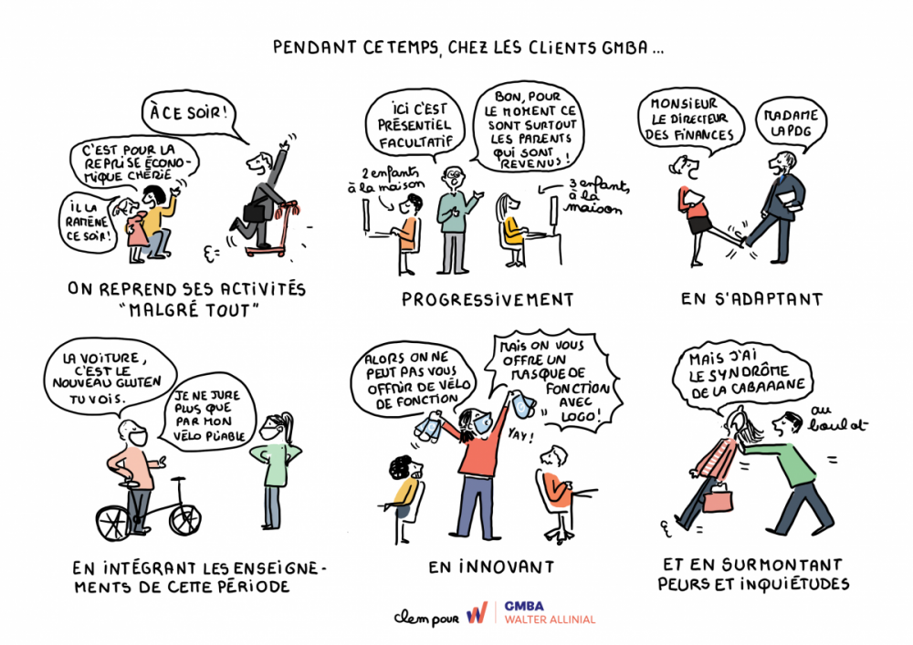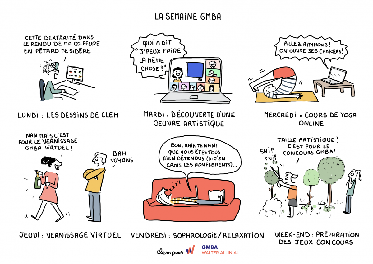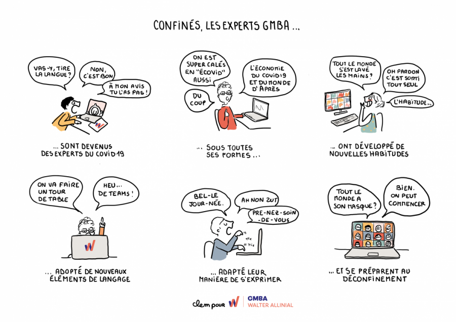 L’illustratrice Clem retrace les anectodes de GMBA en vignettes BD en temps de Covid-19.