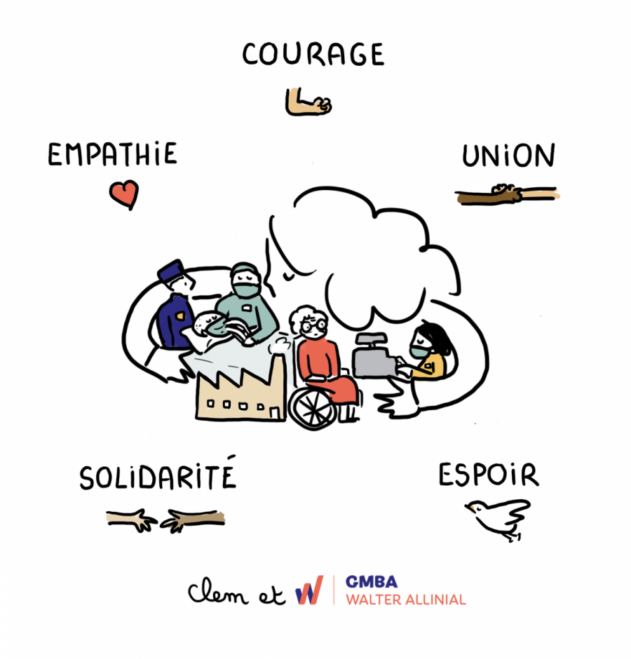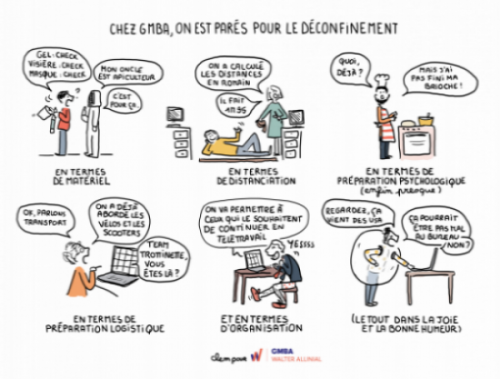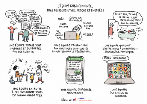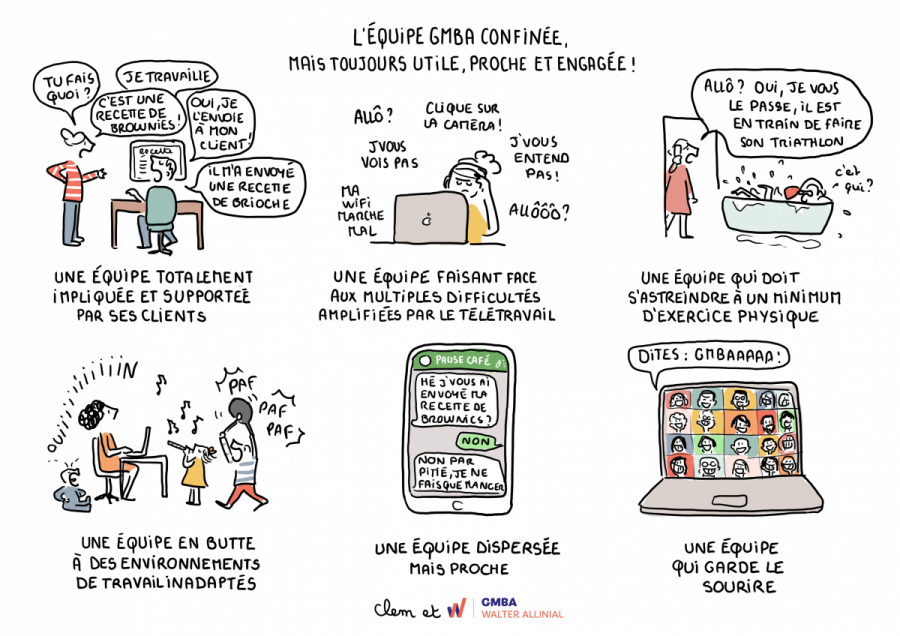 GMBA a souhaité mettre en images ce que cette crise du Covid-19 a bousculé, à la fois dans nos habitudes professionnelles avec le télétravail et les périodes d’activité partielle mais également dans un quotidien plus personnelle avec des messages de soutien au personnel soignant et une reprise de l’activité en déconfinement.